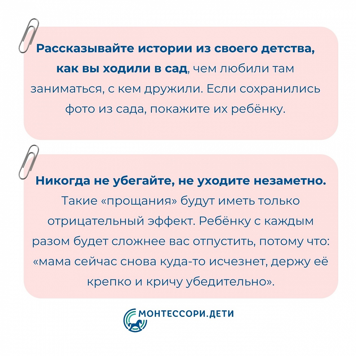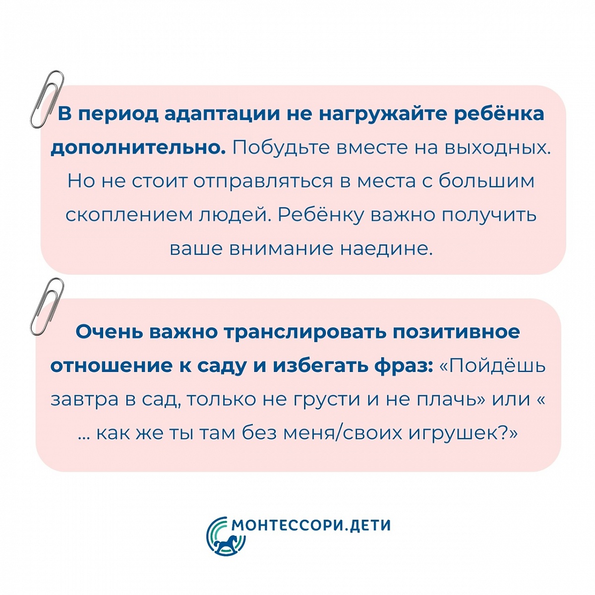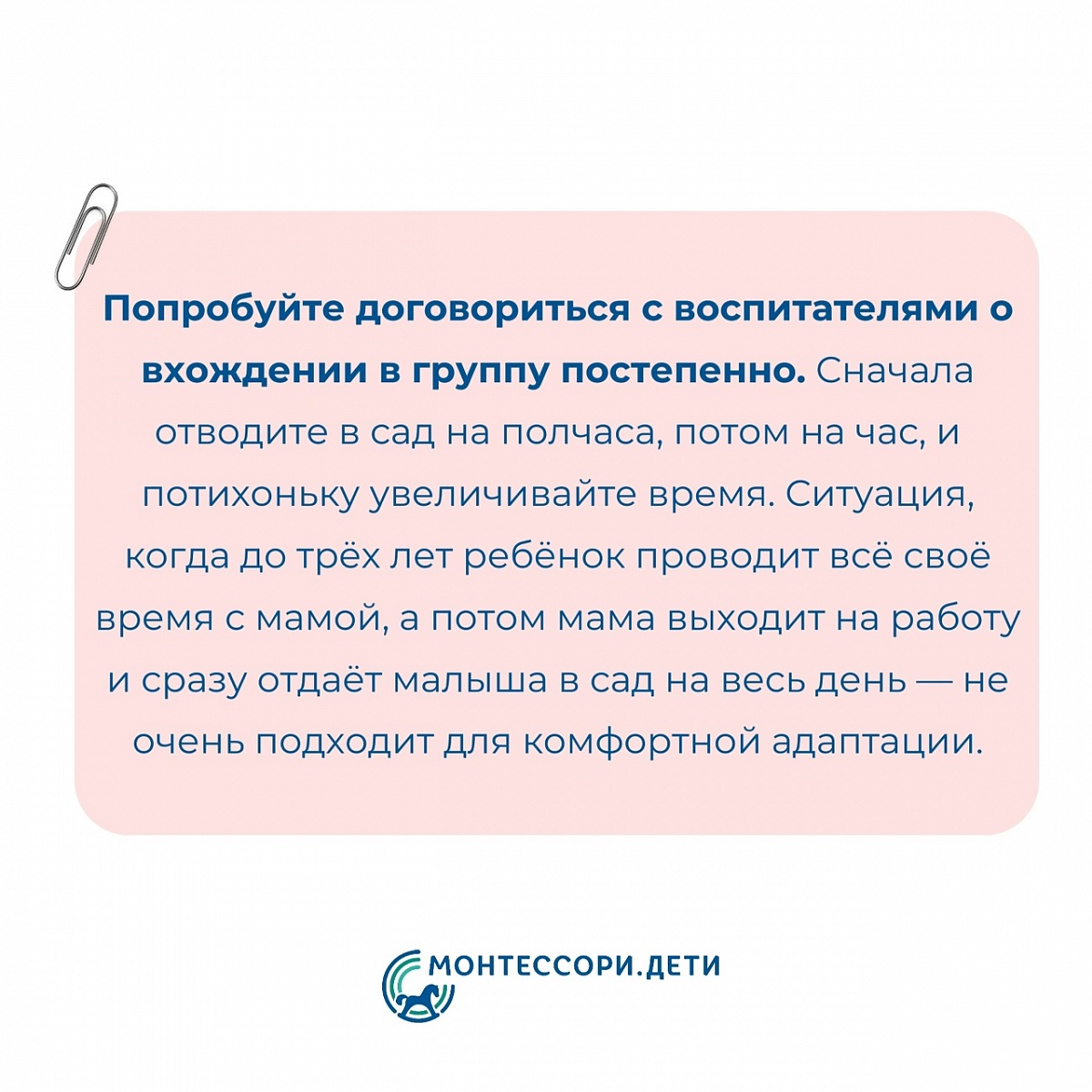 Как же правильно приучить своего ребенка к садику, помочь ему адаптироваться к новым условиям с наименьшими потерями для нежной психики? Читайте в наших карточках.
