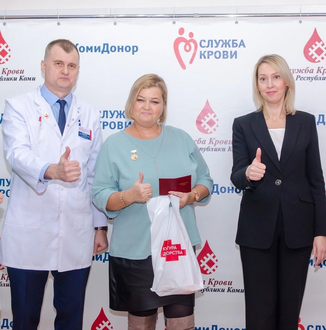 Поздравляем старшую медицинскую сестру приёмного отделения Кривопущенко Алевтину Валентиновну с наградой - Почетный донор России! Торжественная церемония награждения в преддверии нового 2025 года состоялась в Коми Республиканском центре крови. Открыл праздничное мероприятие руководитель Центра крови Дмитрий Журавлев. Он высказал слова благодарности донорам крови и ее компонентов. В церемонии награждения приняла участие первый заместитель министра здравоохранения Республики Коми Татьяна Марунич. Алевтина Валентиновна стала донором в 1995 году, регулярно сдает кровь и ее компоненты с 2013 года, уже более 53 раз. «Работая в детской больнице, в таком сложном отделении, как приемный покой, я вижу, как чья-то кровь спасает жизни нашим маленьким пациентам, поэтому невозможно остаться в стороне. Всех своих близких и коллег агитирую стать донорами» - прокомментировала Алевтина Валентиновна. |