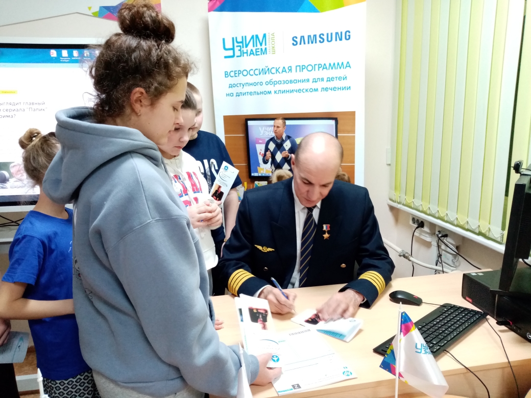 28 января учащиеся Республиканского центра образования, находящиеся на длительном лечении в Республиканской детской клинической больнице, встретились с Героем России Евгением Новоселовым. Рассказ о том, как в 2010 году во время перелета по маршруту Мирный – Москва, Евгений Новоселов, командир самолета ТУ-154, вместе со вторым пилотом Андреем Ламановым совершили аварийную посадку на взлетно-посадочной полосе в Ижме, вызвал интерес и восторг у детей, педагогов и медработников. Благодаря самоотверженной работе экипажа, грамотным действиям и мужеству пилотов были спасены 72 пассажира и 9 членов экипажа. Евгений Геннадьевич ответил на многочисленные вопросы учащихся. Все ребята получили автографы и теплые пожелания, а также сфотографировались с Героем России. Это мероприятие дети запомнят надолго. Встреча была организована по инициативе члена Совета Федерации Дмитрия Шатохина и Региональной общественной организации «Землячество Коми в Москве». |