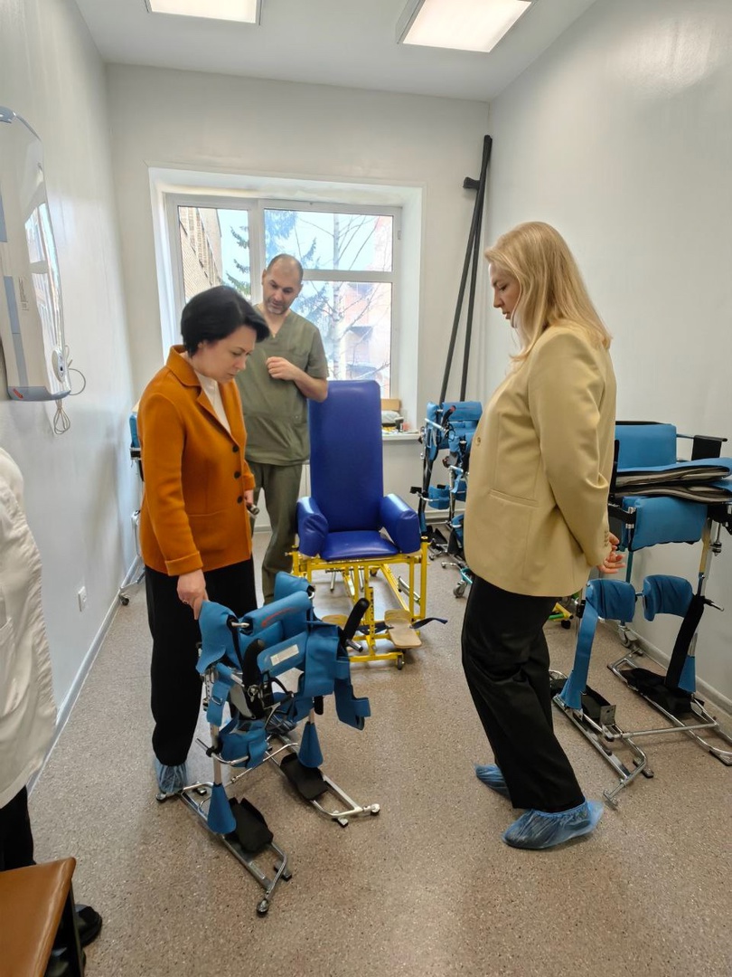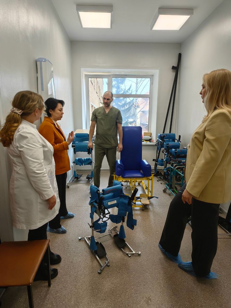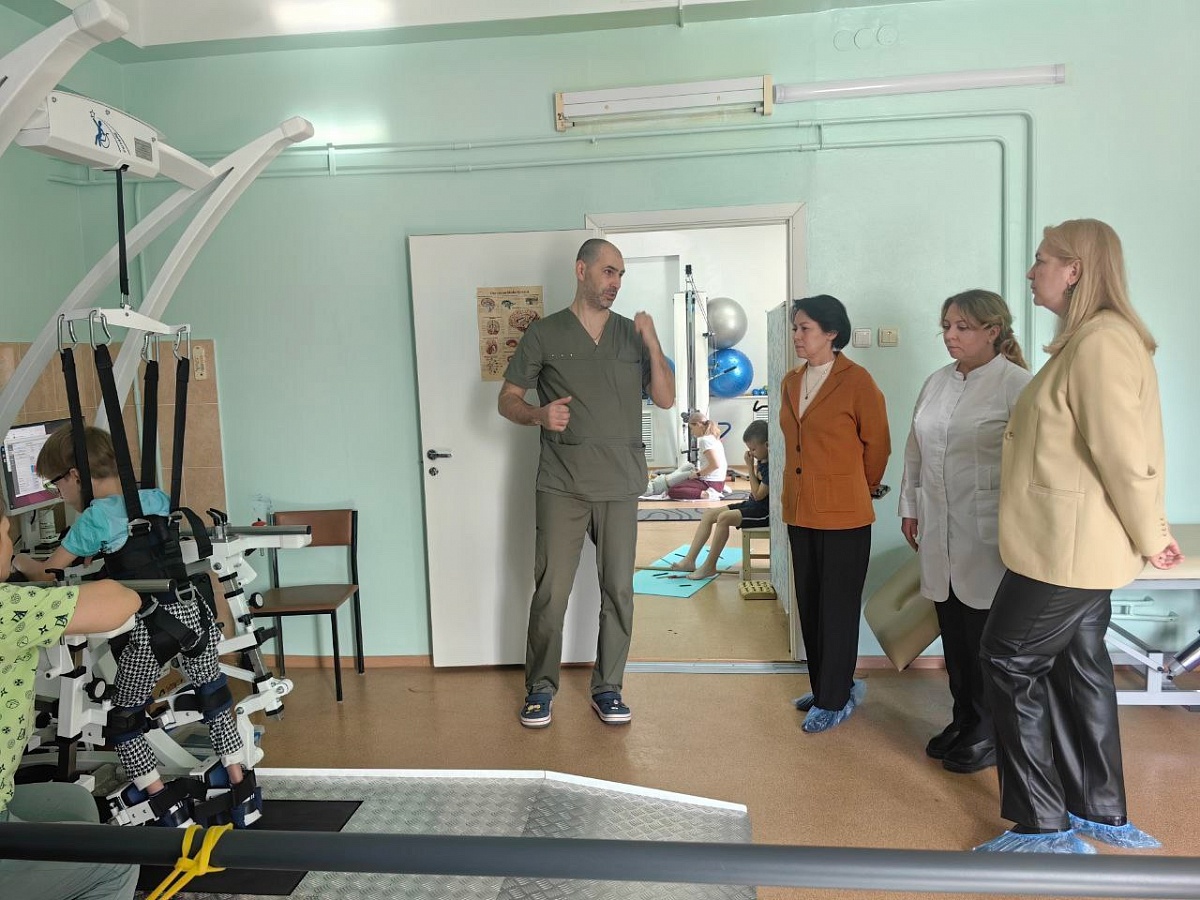 Представители Фонда «Круг добра» Елена Гомольская и Людмила Фоминых побывали в отделении реабилитации. Они познакомились с тем, как врачи отделения выстраивают индивидуальную программу реабилитации для каждого ребенка. Экскурсию для столичных гостей провел заведующий отделением, врач по лечебной физкультуре Михаил Прошутинский.