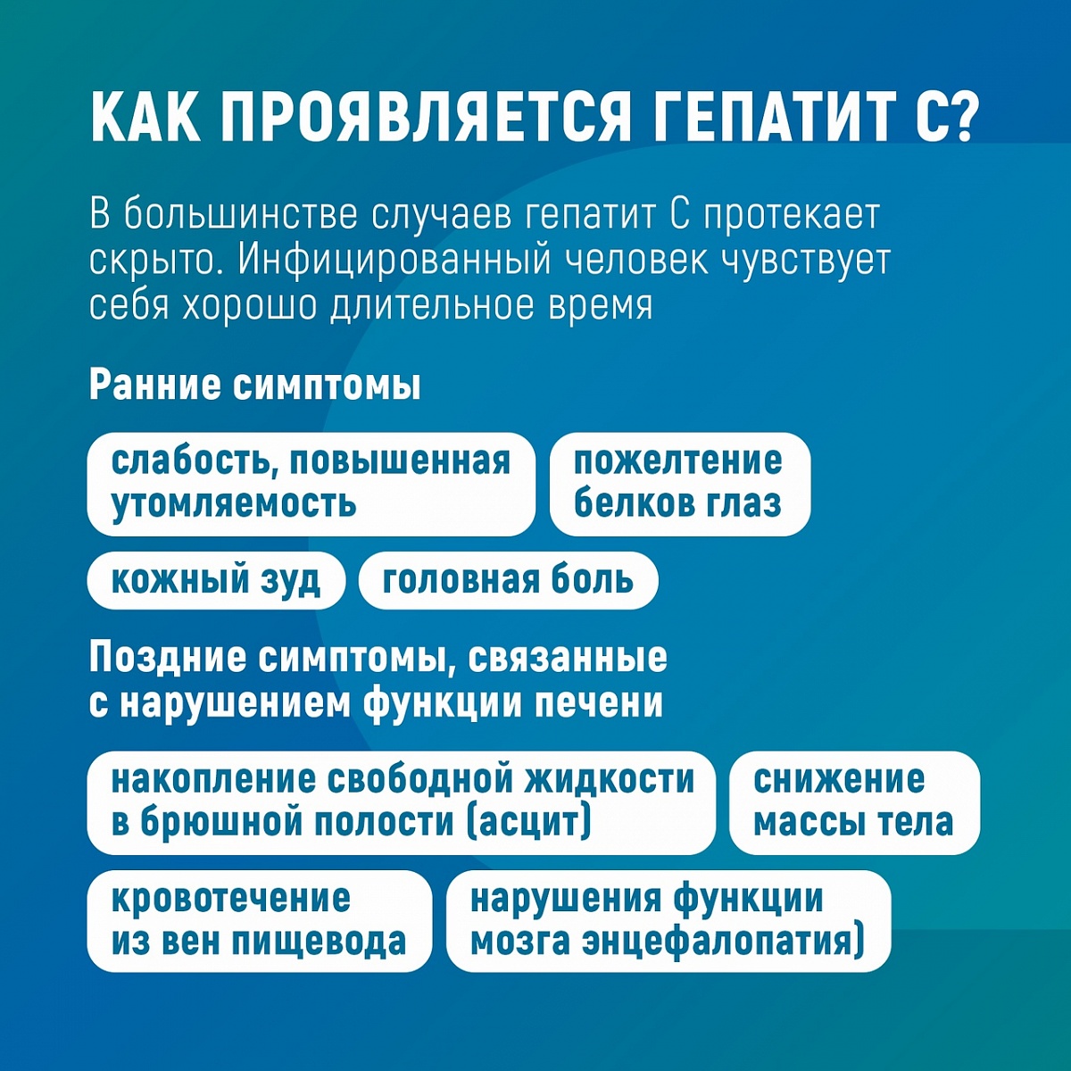 | Гепатит С — это вирусное инфекционное заболевание, которое вызывает воспаление печени. Заразиться можно во время проведения инъекций, работе с плохо обработанными инструментами на маникюре/педикюре, при половом акте с инфицированным человеком. |