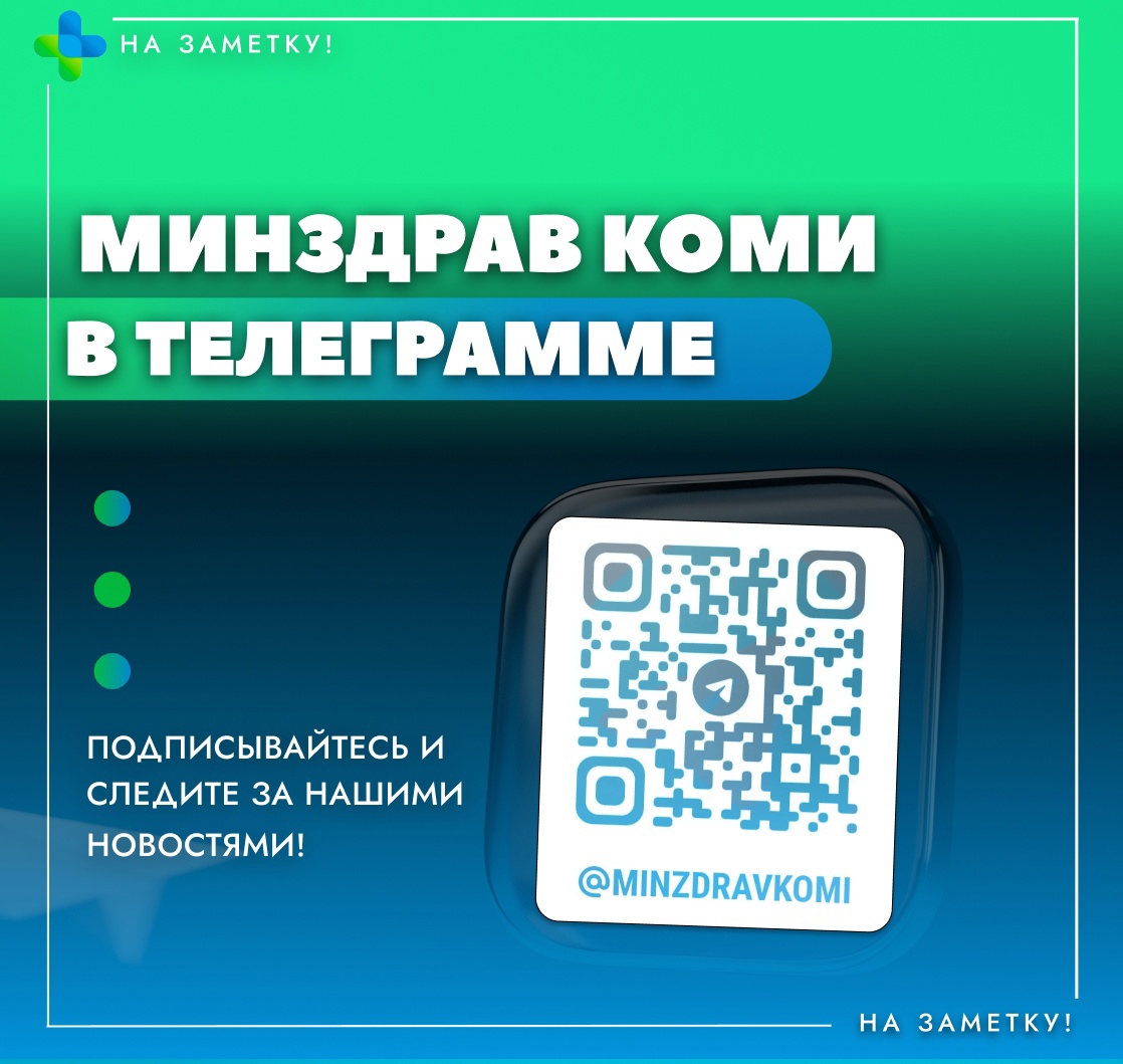 Подписывайтесь на Telegram-канал Министерства здравоохранения Республики Коми и будьте в курсе событий в сфере здравоохранения!