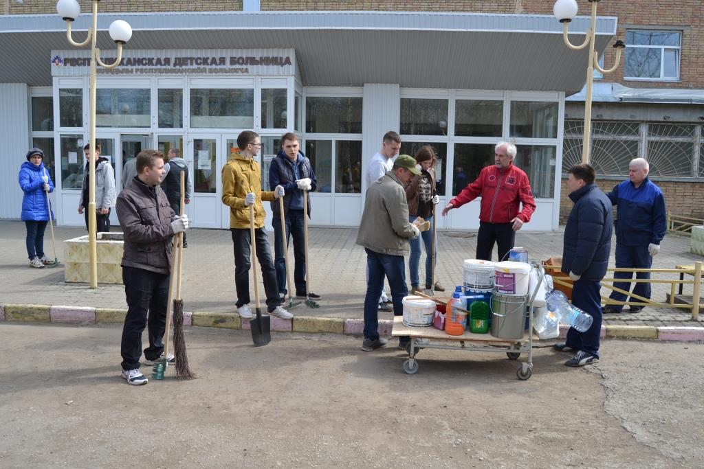 Всего за несколько часов работники банка очистили от мусора всю территорию медицинского учреждения, покрасили бордюры, побелили деревья, а также облагородили детскую площадку.