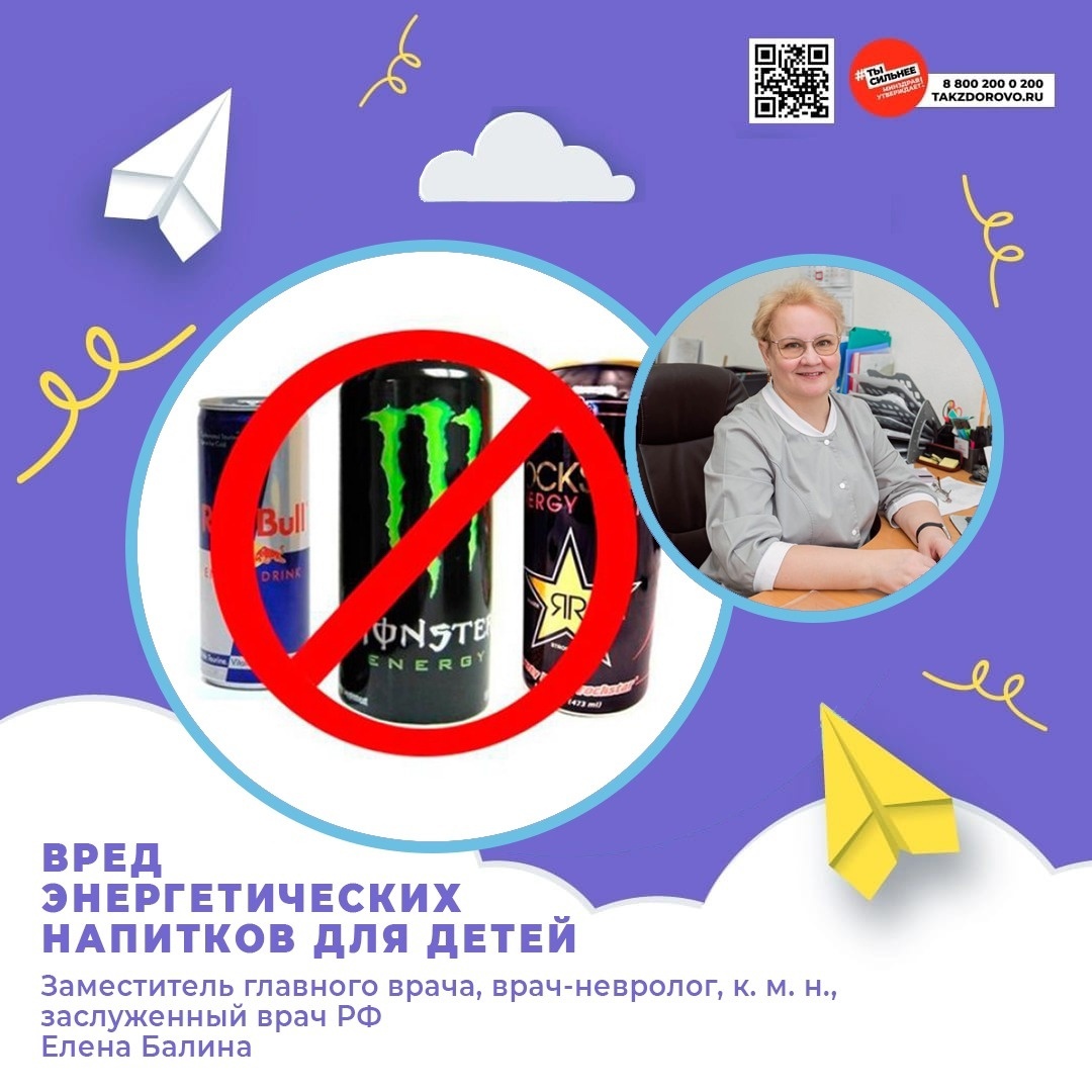 Пояснения дает заместитель главного врача ГУ "РДКБ", врач-невролог, к.м.н., заслуженный врач РФ, Елена Балина: «Энергетические напитки, несмотря на свое название, не «вливают» в организм новую энергию. Своим действием эти напитки обязаны компонентам, которые заставляют организм расходовать внутренние энергетические ресурсы в ускоренном темпе. В результате, выпив 1-2 банки энергетического напитка, человек чувствует, как проходит ощущение усталости и появляется жажда активности. Однако этот эффект длится недолго — от 3 до 5 часов. Потом же, как правило, чувствуется еще больший упадок сил, апатия и физическое истощение. При употреблении энергетиков подростками может появиться сердцебиение, боль в груди, учащенный пульс, нарушение сердечного ритма и гипертензия. Поступление избыточного кофеина с энергетическими напитками может привести к тошноте, рвоте, диарее и болям в животе. Кроме того, избыток сахара может нарушить нормальный баланс микрофлоры кишечника. А регулярное потребление этого напитка ведет к поражению сердечной мышцы и сосудов. Так же энергетики крайне вредно влияют на нервную систему подростков. У подростков может возникнуть головная боль, тревожность, раздражительность, бессонница, головокружение, тремор, спутанность сознания, психоз, судороги. Стоить отметить и ухудшение здоровья зубов и эрозию эмали, т. к. энергетик отличается повышенным содержанием сахара. Эрозию эмали зубов и их чувствительность усугубляет высокая кислотность этих напитков.